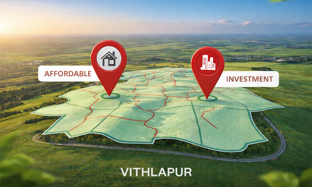 Vithlapur is currently in this transition phase. Development is visible, but prices haven’t reacted aggressively yet.